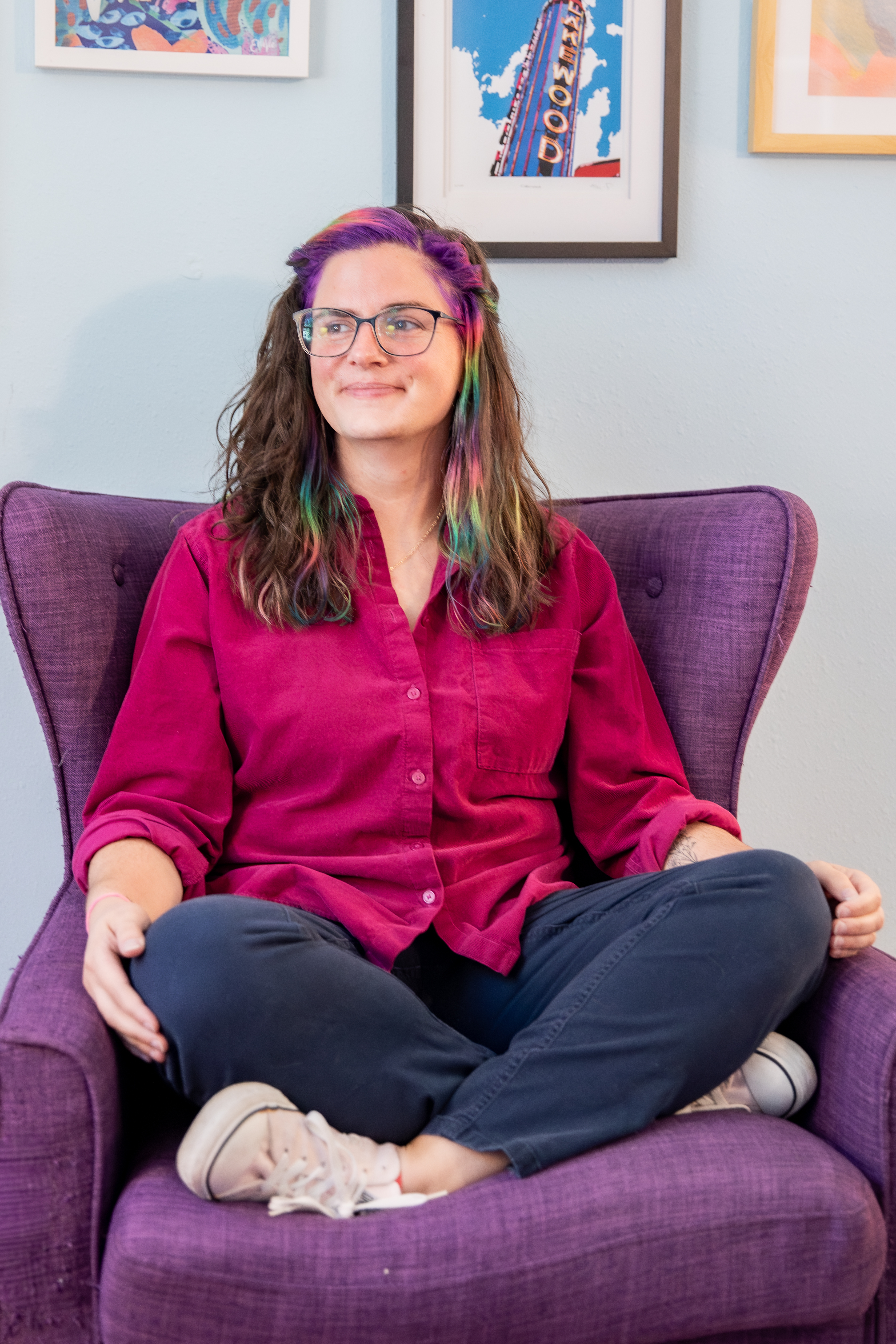 Well, one big reason, honestly, and one small one. The big one: It reminds me of what grounds me as a therapist. One of my favorite metaphors is by Kelly Wilson and Steven Hayes. The metaphor compares how we look at a sunset vs. how we look at people. We look at sunsets and take in their beauty without saying what they could do to be prettier. Rarely do you hear someone say ‘That sunset needs more purple’ or ‘The fluffy clouds should be over there.’